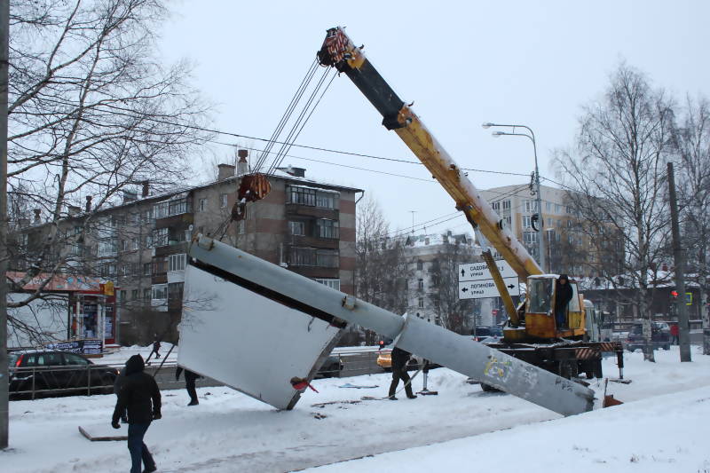 В столице Поморья демонтировали очередную рекламную конструкцию, установленную в нарушение правил. Произошло это в Октябрьском округе Архангельска.