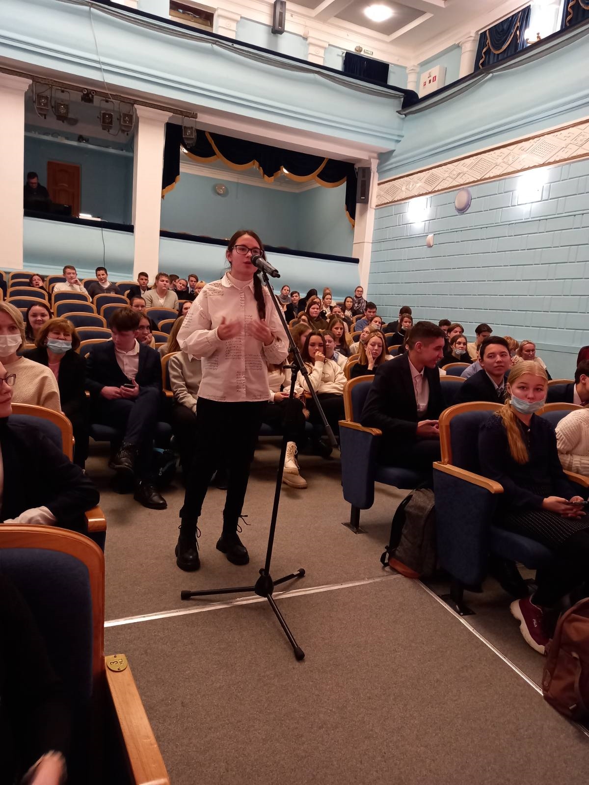 После спектакля состоялась «Театральная гостиная», ставшая популярной среди юных театралов и педагогов школ города, желающих в неформальной обстановке встретиться с артистами и обсудить увиденный спектакль. Учащиеся принимают активное участие в диалоге, а авторы самых интересных вопросов получают подарки от директора театра Дмитрия Капустина.