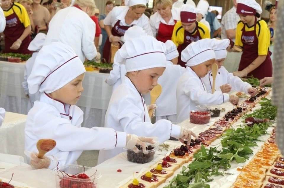 - в Чебоксарах в 2018 году изготовили самый длинный бутерброд воспитанники детских садов №№ 8 и 169 под руководством профессиональных поваров весом около 100 кг, длиной - 105 метров;