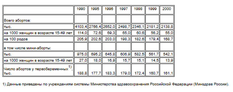 А ведь еще были катастрофические потери от абортов. По неполным данным Росстата, с 1990 по 2000 годы только от абортов страна потеряла 18 млн 968 тыс. человек.