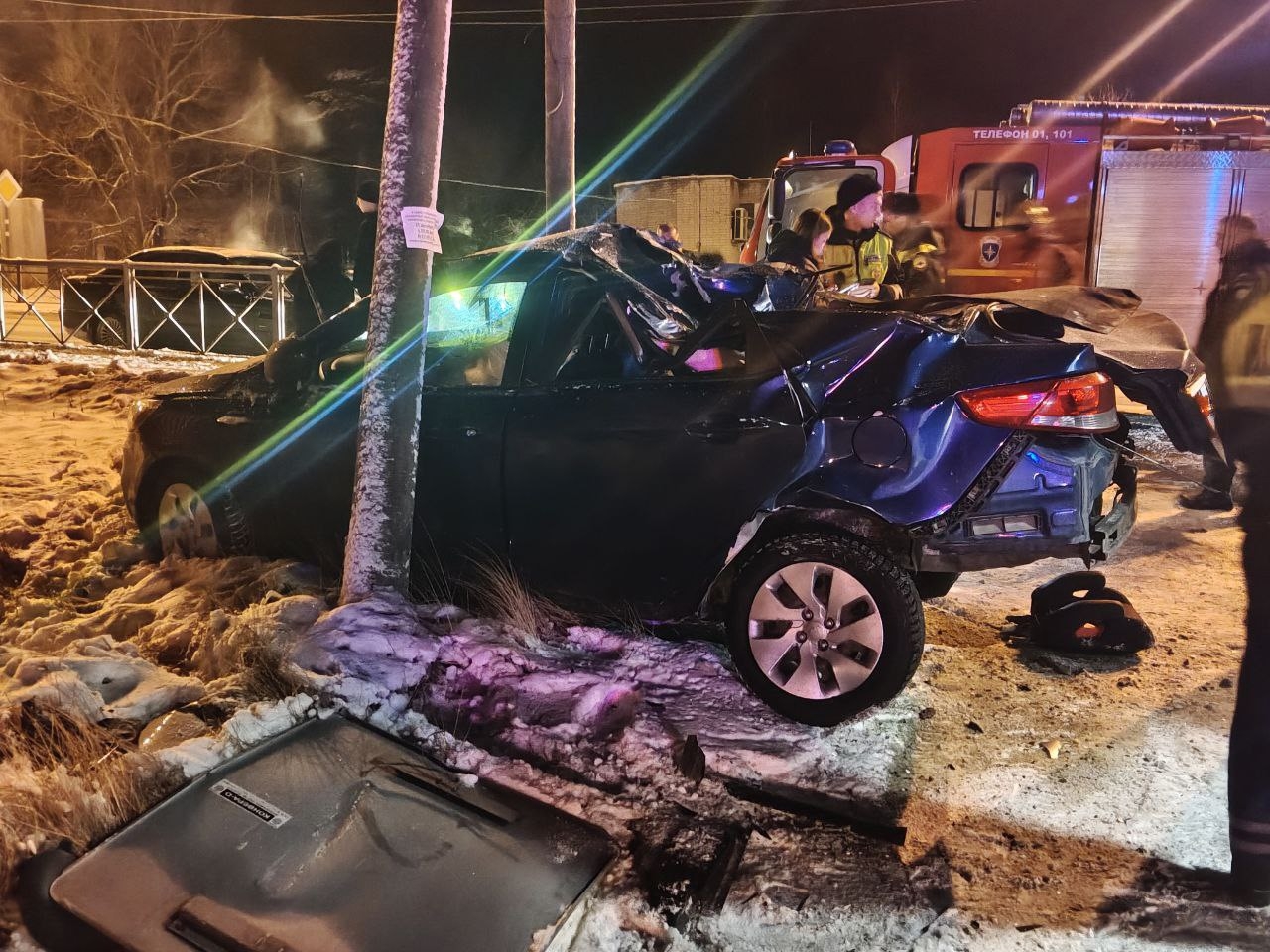 28 декабря около полуночи автомобиль вылетел с дороги и врезался в столб около дома 51 на Выборгском шоссе в Сортавале.