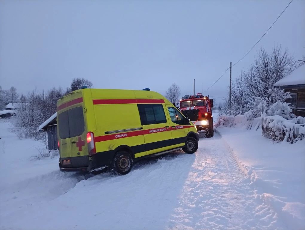 В Карелии «скорая» застряла в сугробе: ее пришлось вытаскивать пожарным