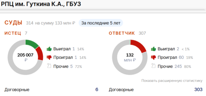 Судя по открытым данным, на РПЦ поступило 307 исков за пять лет. Перинатальный центр же подавал в суд лишь семь раз.