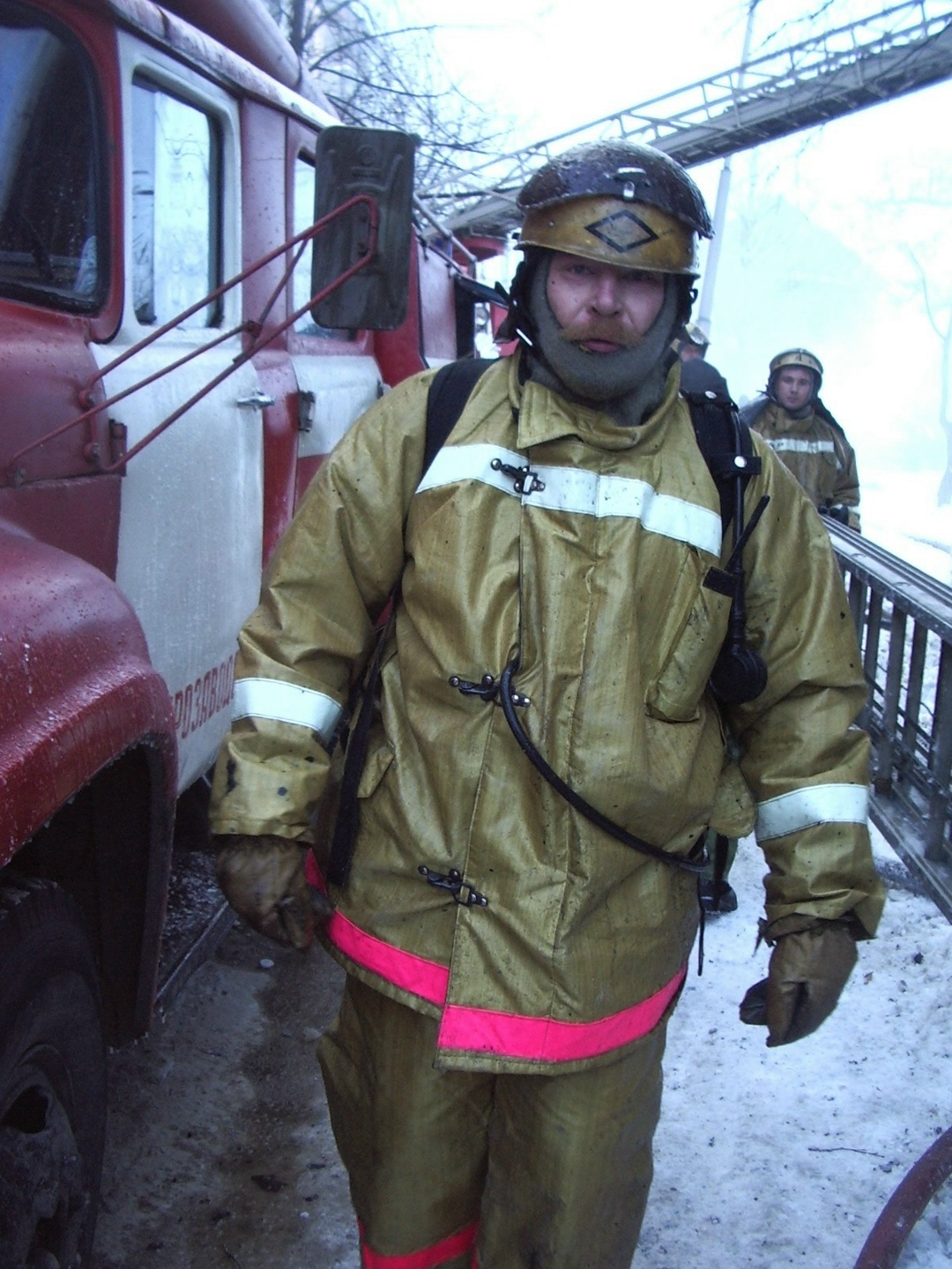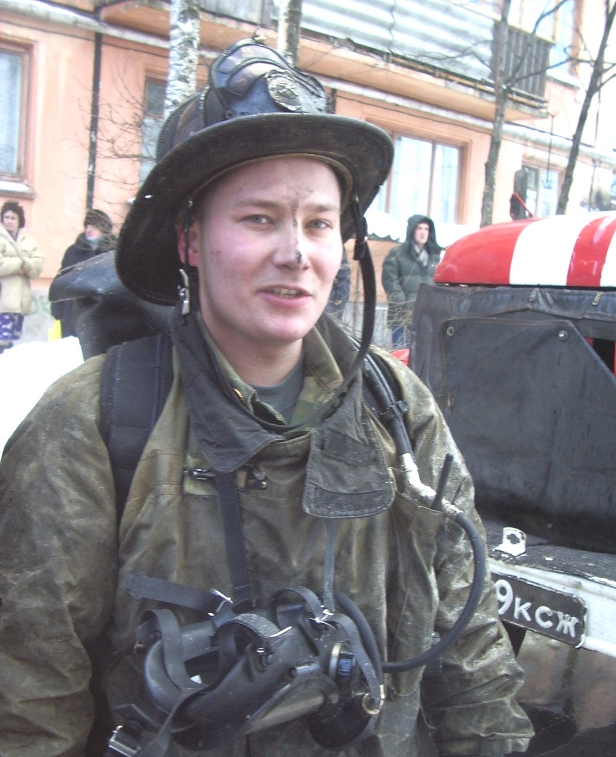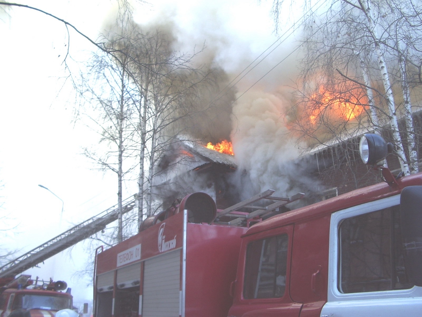 — Когда через шесть минут на место происшествия прибыли первые пожарные расчёты, открытым пламенем горели три квартиры на втором этаже и кровля. Огонь быстро распространялся по старому сухому строению, — писал автор. — Густые клубы дыма, мощные языки пламени, громкая канонада от взрывающегося шифера, толпа зевак — это первое, что я увидел… Как дирижёр руководит оркестром, так оперативный дежурный майор внутренней службы Олег Бурдин руководил пожарными.