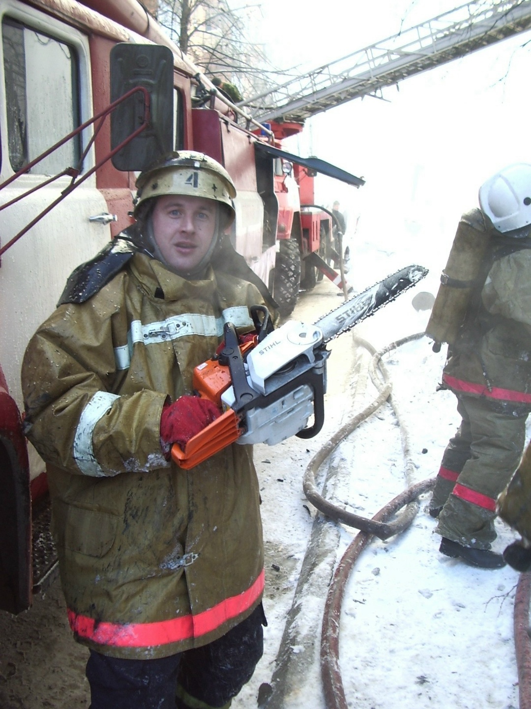 Бензопилой Сергей Пекша вскрыл деревянную обшивку, и на языки пламени обрушили поток воды из нескольких стволов. Водитель пожарной автолестницы Евгений Полев на крошечном пятачке умудрился развернуть свою махину в боевое положение, дав возможность пожарным добраться до чердака.