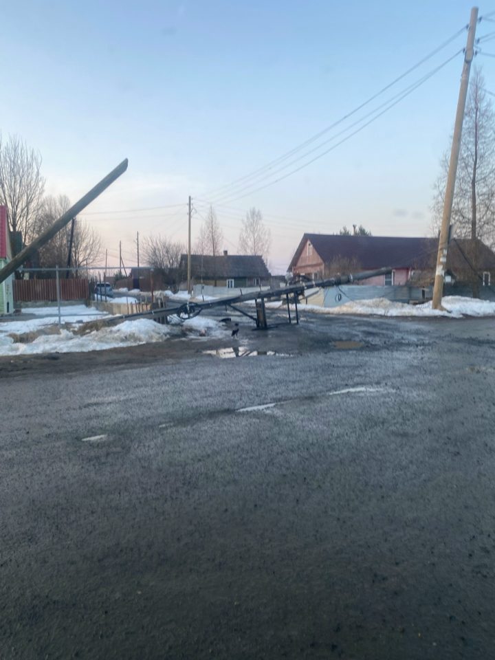 Под Петрозаводском рухнул столб: дорога перекрыта