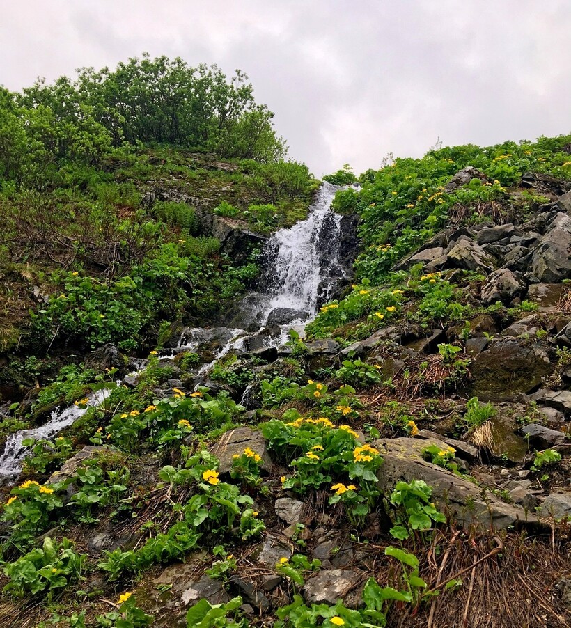 Здесь стоит сделать первый привал, насладиться бирюзовым цветом воды и послушать музыку гор, которую создают сбегающие вниз ручьи.