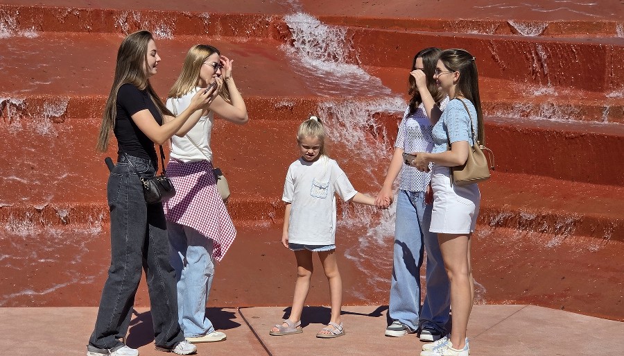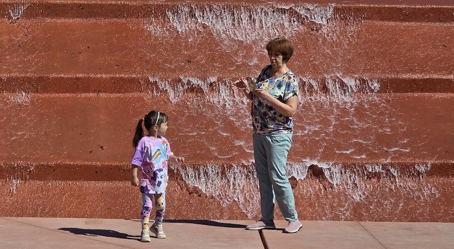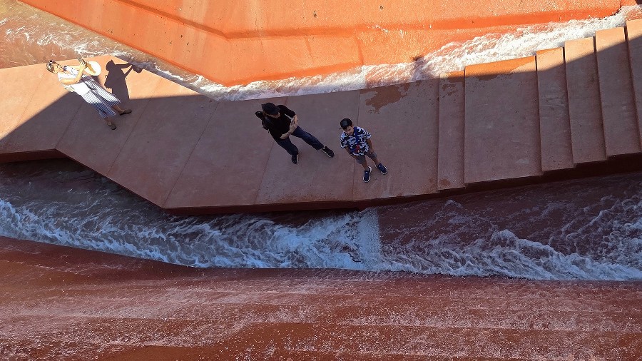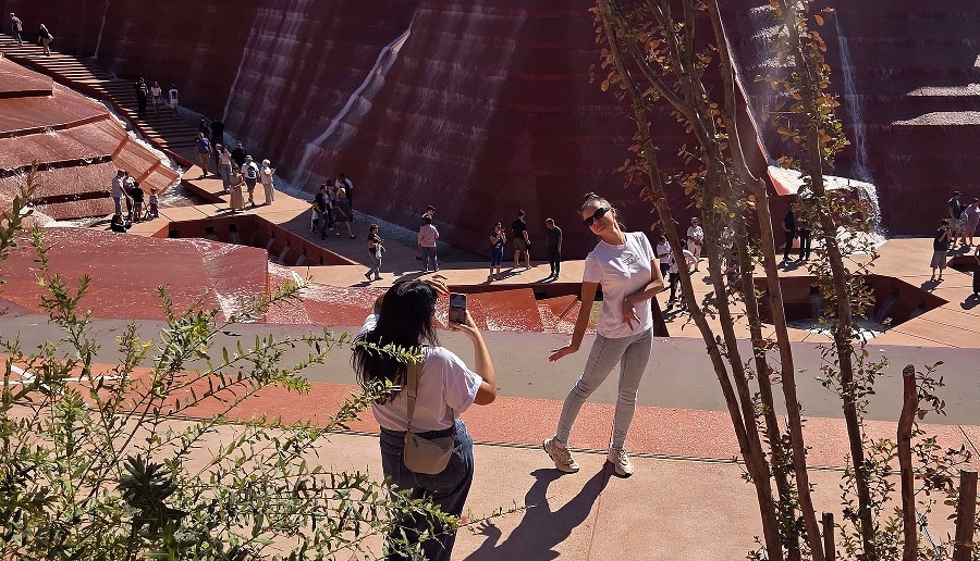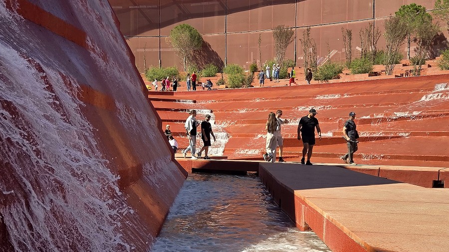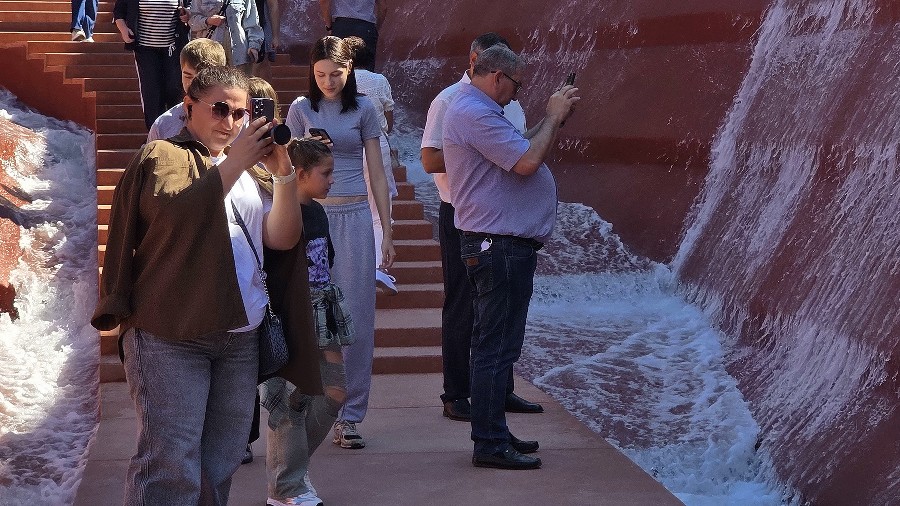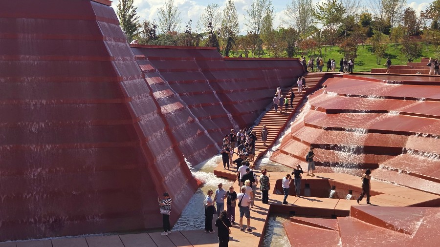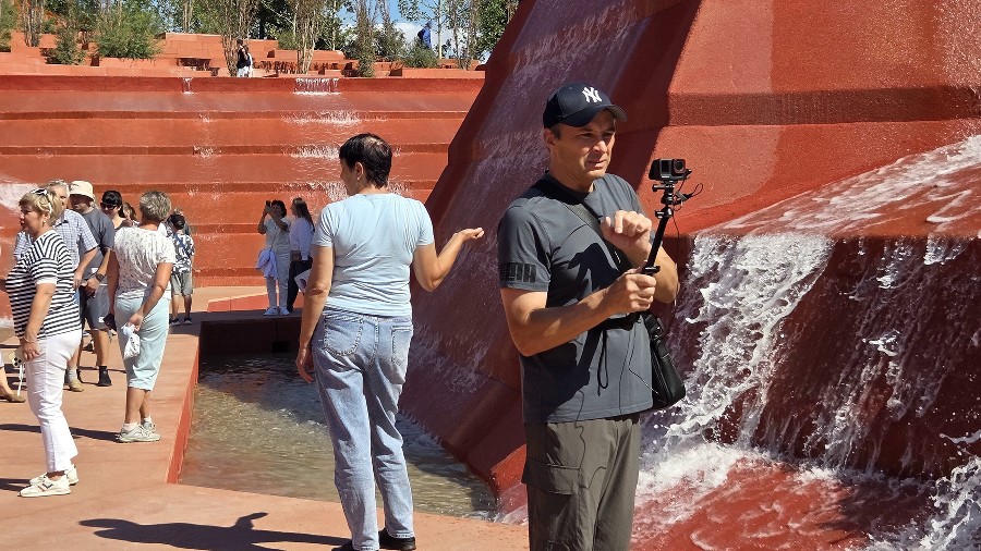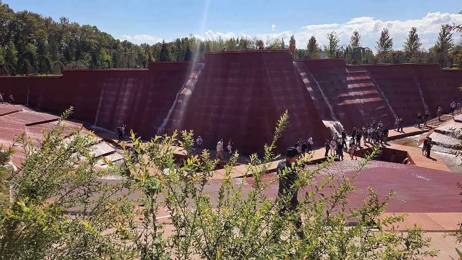 Красные стены, много воды и многоуровневые ступеньки. Как выглядит новая локация «Амфитеатр воды» в парке «Краснодар»
