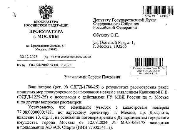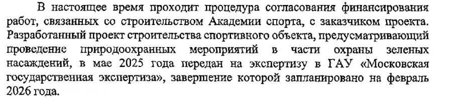 Просим взять под депутатский контроль прохождение государственной экспертизы проектной документации по территории «Трудовые резервы», а также учёт в ходе экспертизы ранее выявленных надзорными органами нарушений.