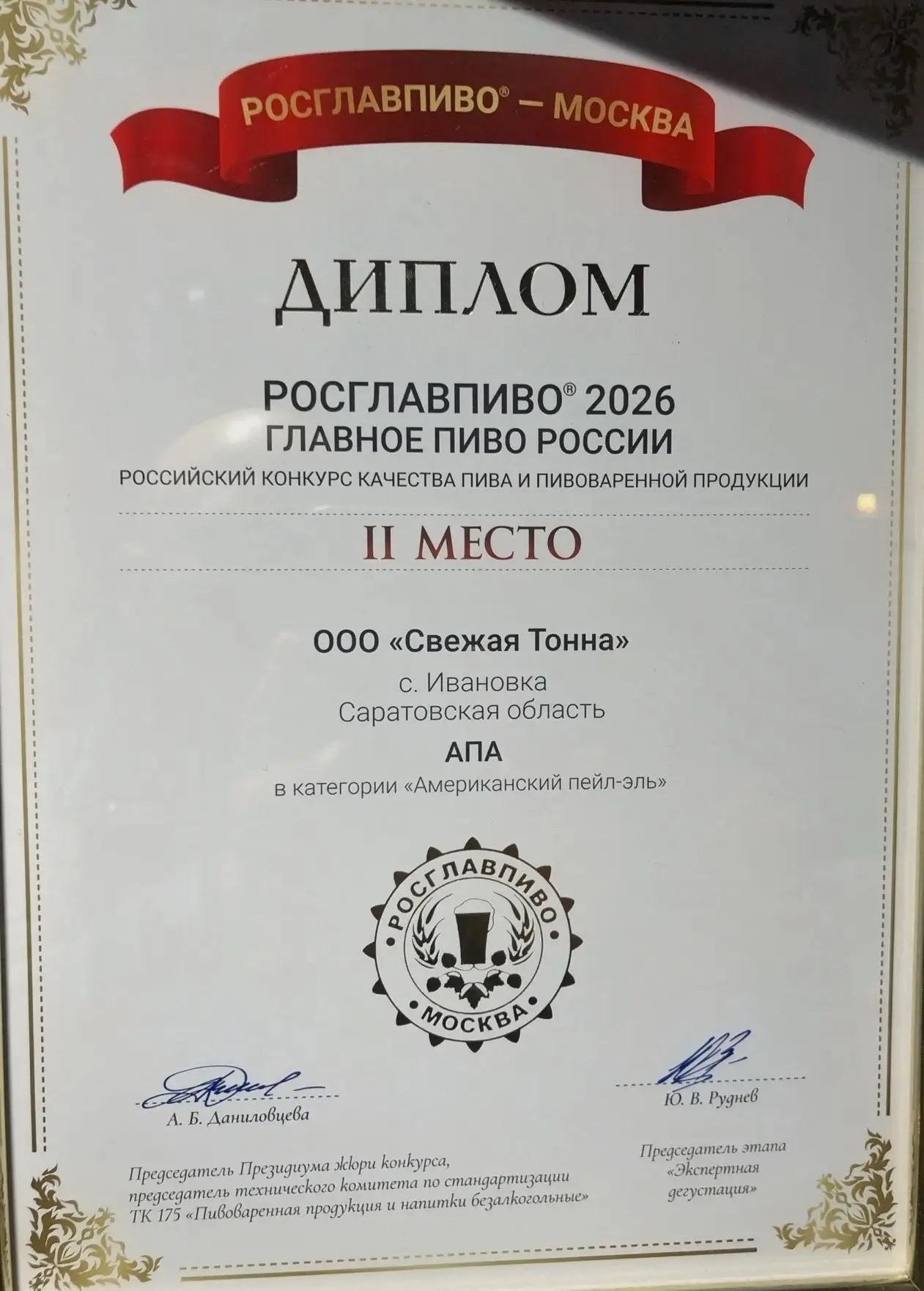 Компания «Свежая тонна», которую возглавляют Денис Сычёв и Михаил Черемных, заняла второе место на X российском конкурсе качества пива и пивоваренной продукции «Росглавпиво – Главное Пиво России». Молодые и инициативные балаковцы представили продукцию собственного производства в категории «Американский пейл-эль» (АРА). Конкурс прошел в апреле в Российском биотехнологическом университете в Москве. Участвовало 165 компаний, которые представили 466 образцов пива. Жюри из 47 человек оценивало напитки по цвету, аромату, игристости, вкусу и послевкусию.