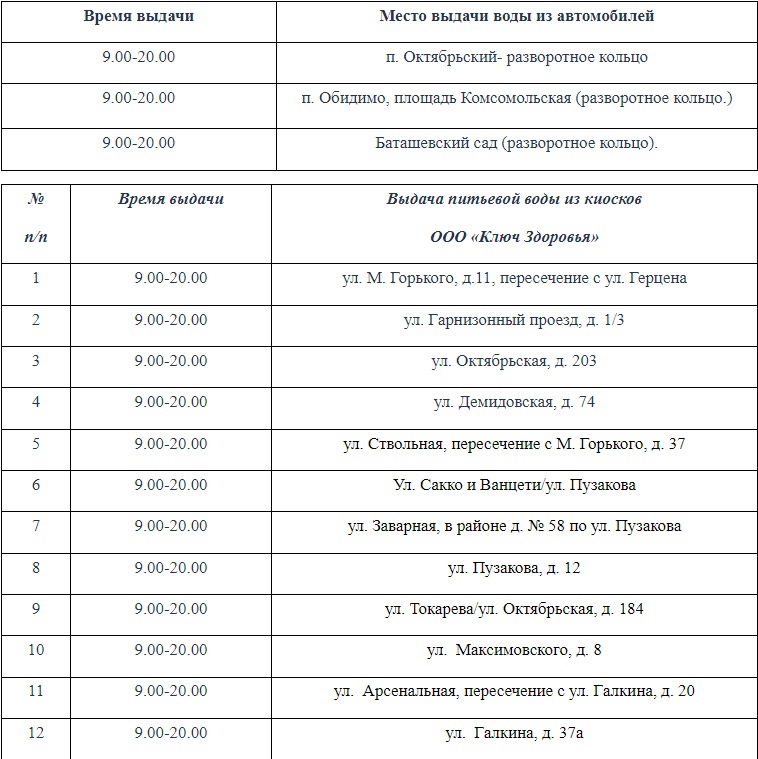 Представители администрации советуют тулякам заранее подготовить запасы воды. При этом в городе организуют бесплатную раздачу питьевой воды. Она будет доступна по следующим адресам:
