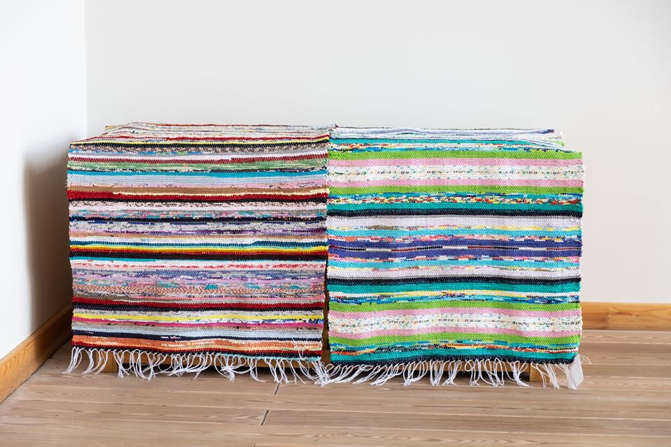 Основной товар мастериц – половички, но можно ткать полотенца, дорожки на столы, украшения, сумки. Делали и коллаборации: шезлонги — со столяром, подушки — с дизайнерами. Дизайнер Светлана Синельникова отдала обрезки от своей коллекции, северные мастерицы соткали из них полотно, и она сделала сумки. Сейчас фонд сделал поставку в питерский «Леруа Мерлен» — 200 метров половиков.