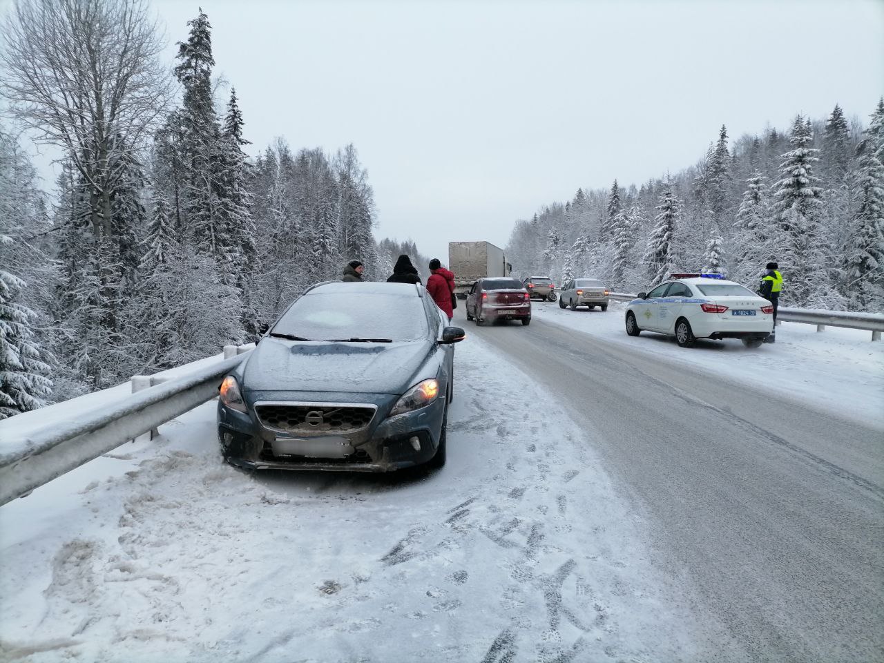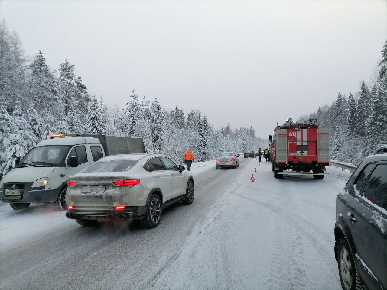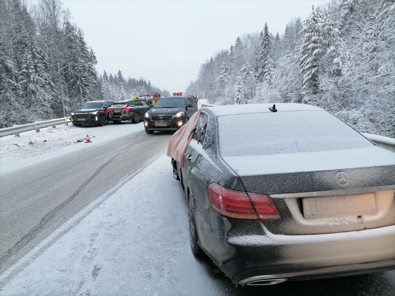Вчера, 3 января в 13:31 поступило сообщение об аварии на 319 км автотрассы Р-21 «Кола». Там столкнулись шесть легковых машин.
