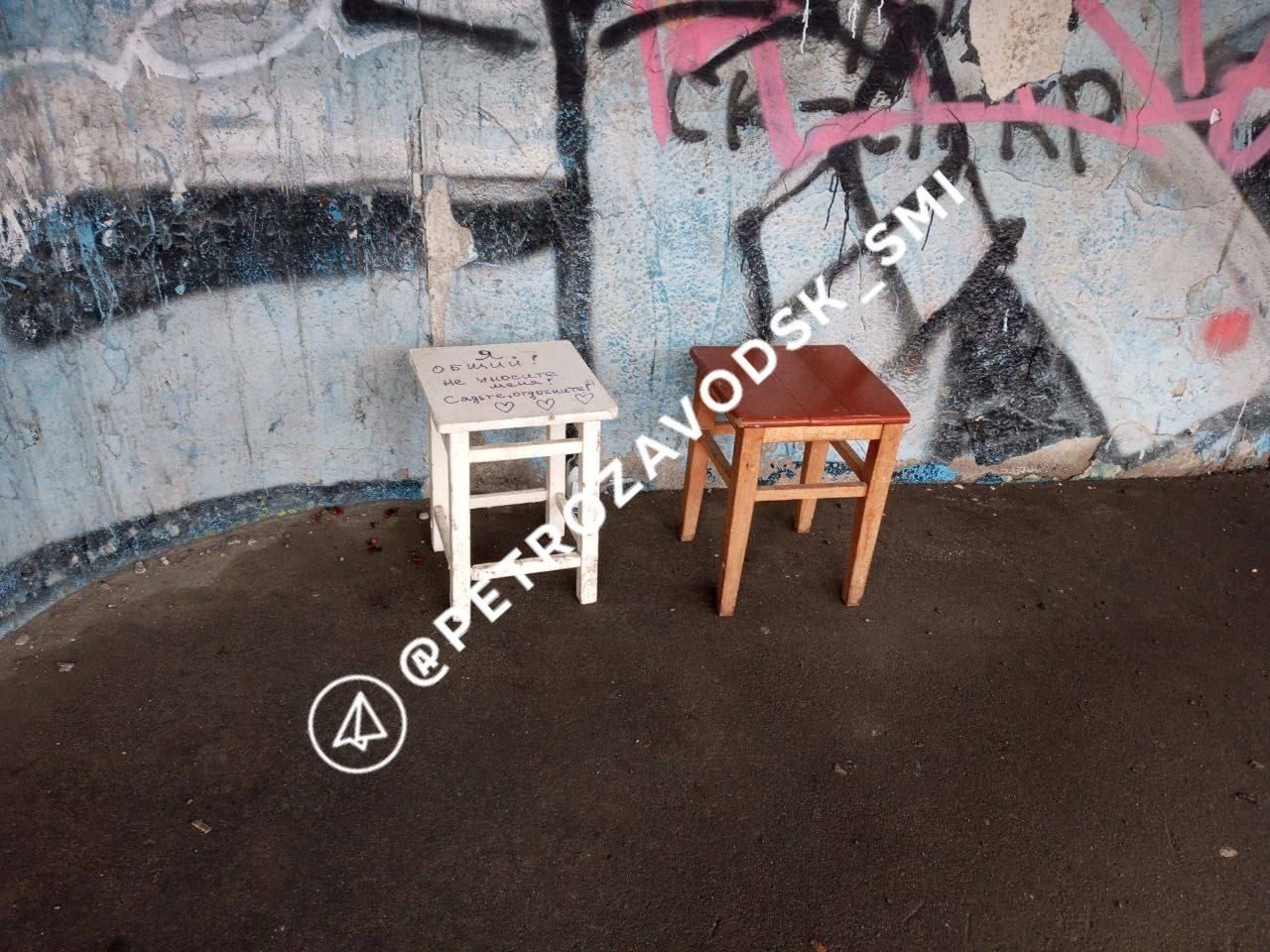На страшной остановке в Петрозаводске рядом с милым табуретом появился еще один