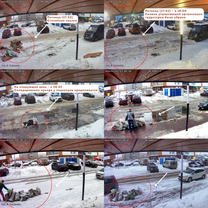 27 февраля сотрудники управляющей компании полностью убрали территорию от мусора, но уже на следующий день у подъезда снова появились стихийные свалки.