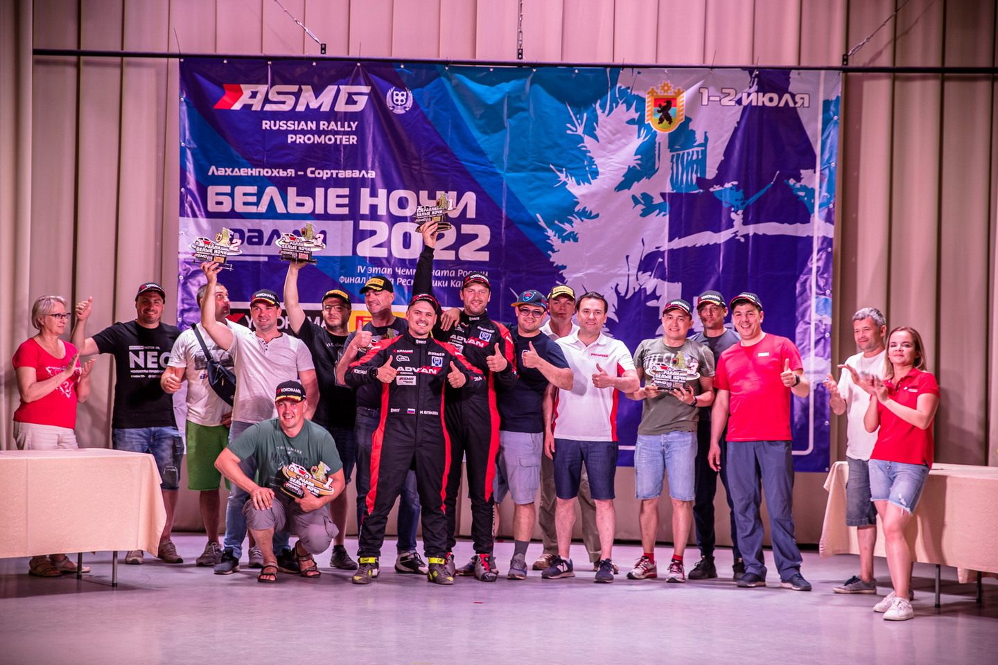 Победителем ралли «Белые ночи» 2022 года стал экипаж Артура Мурадяна и Ярослава Федорова. На финише они опередили ставших вторыми Дмитрия Воронова и Кирилла Еникеева почти на 44 секунды. Денис Ростилов и Василий Слобожанинов финишировали третьими более чем в двух минутах позади победителя ралли. Не поменялся лидер и в зачете R2 – занимавший первое место по итогам пятницы Вячеслав Никонов довел гонку до победного финиша. Но если в абсолютном зачете и в зачете R2 во второй день лидеры не поменялись, то в N4 и R3 ситуация изменилась кардинальным образом.