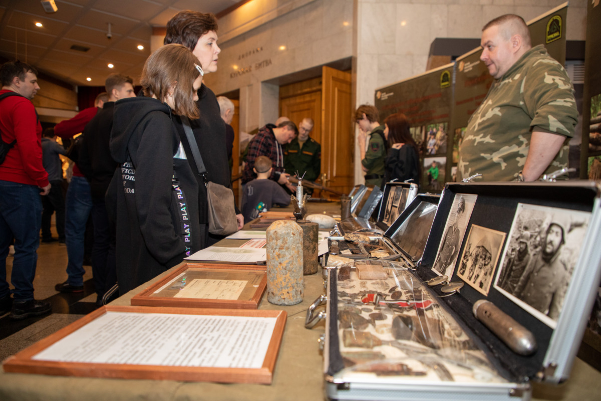 Накануне, 23 февраля, в московском Музее Победы на Поклонной горе прошла однодневная выставка военных реликвий. На экспозиции их было представлено порядка 200, все они являлись личными вещами бойцов и оружие, которые были найдены на местах боев в годы Великой Отечественной войны