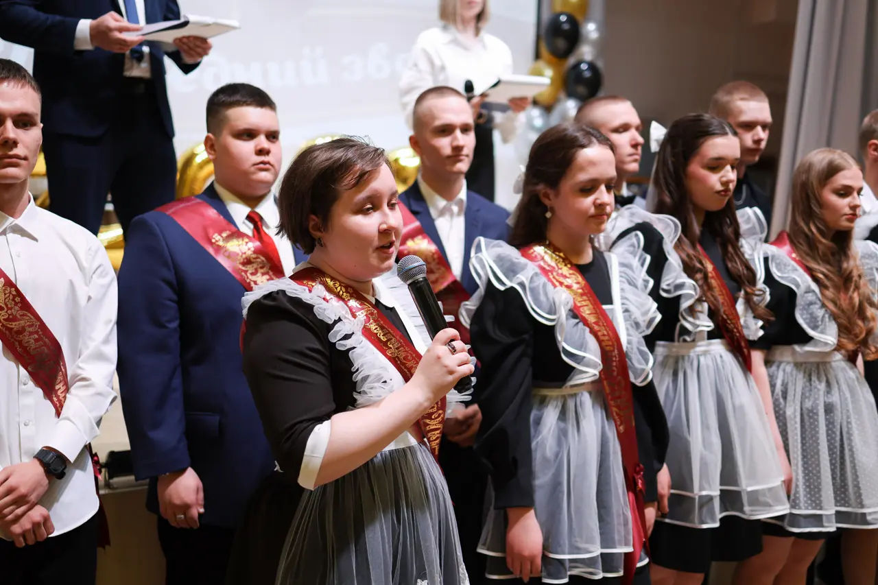 Первой поздравила директор школы Екатерина Тетерина, зачитав приказ о допуске всех ребят до итоговой аттестации. Сказала добрые слова о каждом, отметив, что все по-своему талантливы и уникальны. А еще нынешний 11А — это пятый выпуск в пятилетней истории школы и по словам директора, это знак, что все экзамены будут сданы на «отлично».