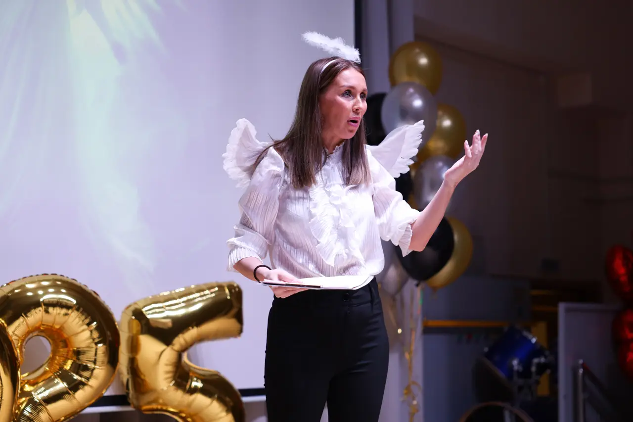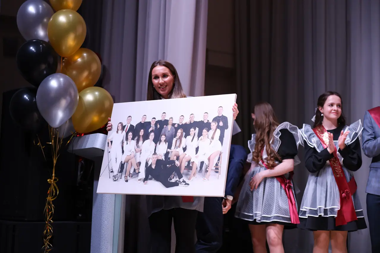 Обратились выпускники и к родителям. Нейросети творят чудеса: ребята сделали ролики, соединив себя-первоклассника с собой-выпускником. Мамы и папы плакали, не веря, что дети так быстро выросли. Еще один сюрприз для родителей подготовили дети, записав на видео реакцию мам на звонок сына или дочери со словами любви. Замечательная идея, которая вызвала бурную реакцию в зале. После слов ребенка «Мама, я люблю тебя», реакции мам были самыми разнообразными: «что случилось?», «ты заболел?», «тебя кто-то обидел?», «а это точно ты?». В финале этого необычного эксперимента, мамы тоже сказали своим детям в ответ слова любви.