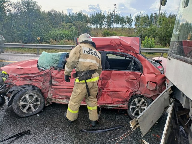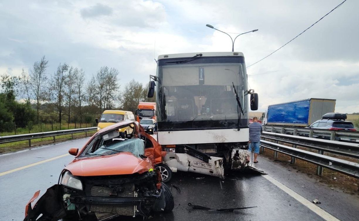 По предварительной информации, легковушка Kia Rio столкнулась с автобусом в 14:30 на 217 км на трассе М-4 «Дон».