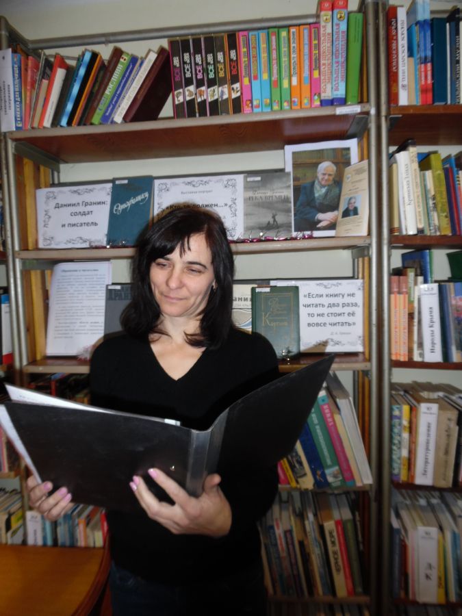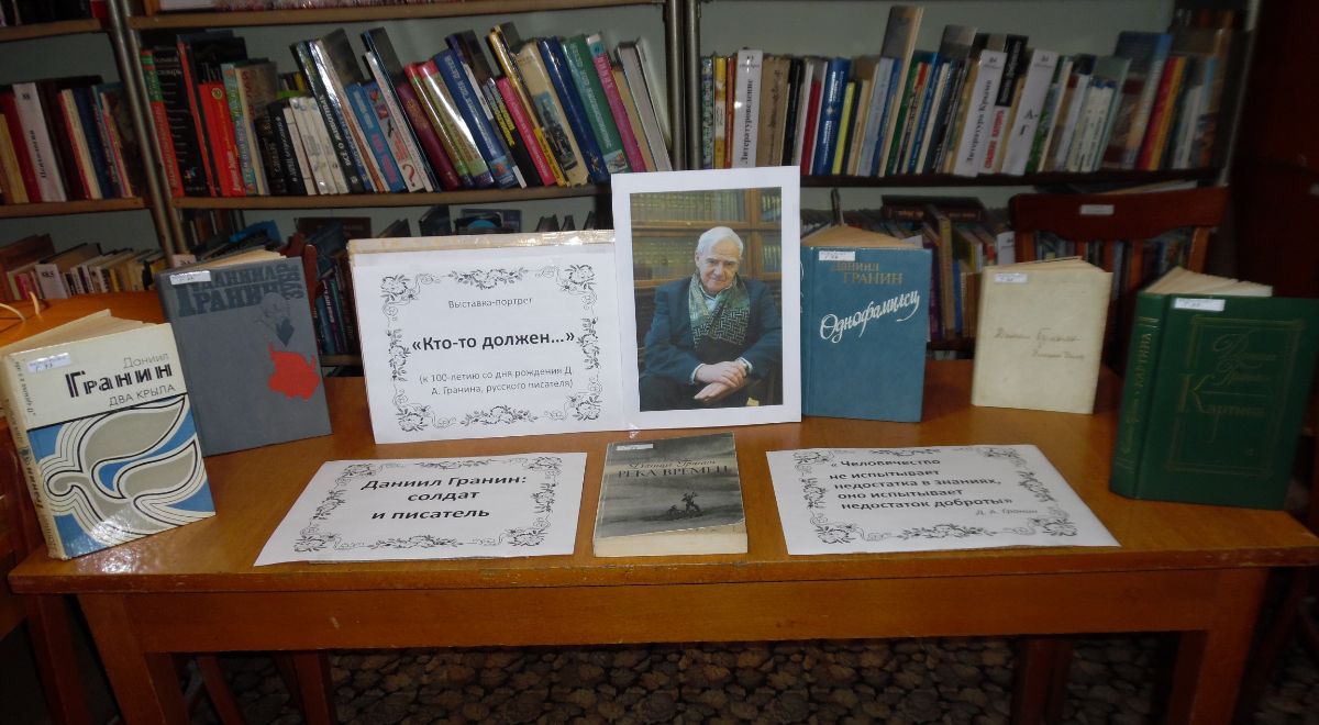 Библиотекарь Надежда Колесникова рассказала ребятам о жизни и творчестве Д.А. Гранина. Заведующая библиотекой Наталья Каржавина познакомила гостей с книжной выставкой «Кто-то должен…» и провела обзор произведений писателя. Вниманию зрителей был представлен видеофильм «Вечер памяти Даниила Гранина».