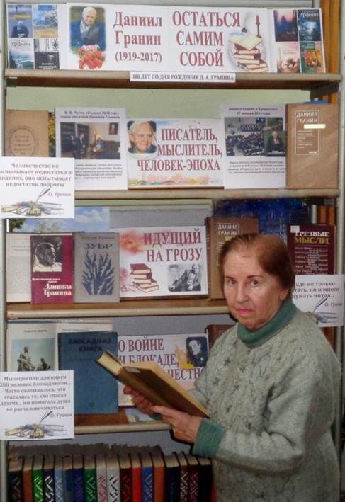 К юбилею писателя и в рамках празднования Года Гранина в России библиотека-филиал №4 им. М.М. Коцюбинского МБУК ЦБС для взрослых Симферополя организовала для своих читателей выставку-портрет «Даниил Гранин: остаться самим собой».