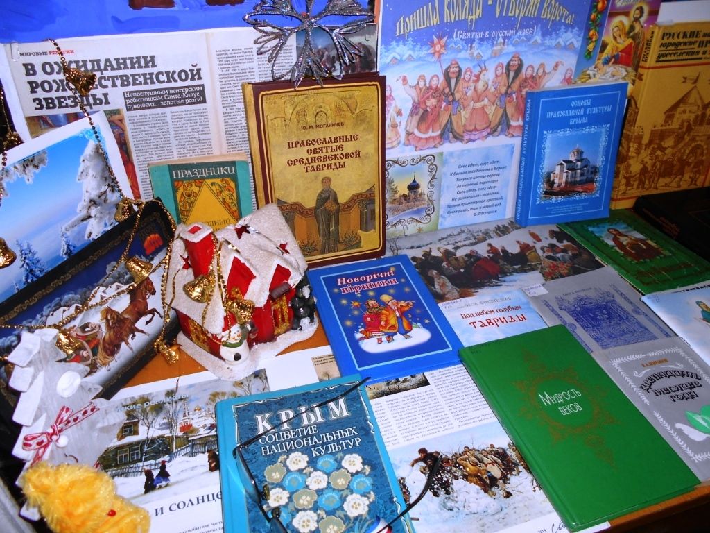 На книжной выставке «Пришла Коляда – отворяй ворота», познакомившей участников мероприятия с изданиями, посвященными русским православным зимним праздникам, ключевое место заняли «Основы православной культуры Крыма», «Православные святые Средневековой Тавриды» Ю.М. Могаричева.