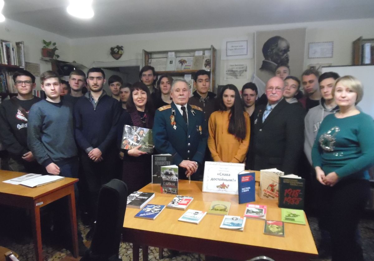 Для молодежи важно знать и помнить свою историю и защитников Отечества. 19 февраля в библиотеке-филиале №7 им. Т.Г.Шевченко было проведено мероприятие: авторитет имени «О подвигах, о доблести, о славе» для членов молодежно-патриотического объединения «Отечество», студентов ГБПОУ РК «Симферопольского политехнического колледжа».
