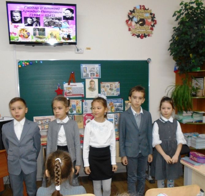 Гимназисты совершили путешествие по героическим страницам жизни и творчества Аркадия Петровича Голикова, который вступил в ряды Красной Армии, когда ему было всего 14 лет, в 15 лет уже командовал взводом, в 16 – полком. В годы Великой отечественной войны писатель вернулся на фронт военным корреспондентом, в октябре 1941 года Гайдар погиб в схватке с фашистами, спасая своих боевых товарищей. А в мае 1945 года в Берлине, на стене Рейхстага появилась надпись «Гайдара нет – тимуровцы в Берлине!». Аркадия Гайдара по праву называют отцом тимуровского движения, воспитавшего поколения настоящих, с чистым сердцем, людей. 19 июля 1941 года «Пионерская правда» писала: «Тысячи и тысячи пионеров и школьников взяли пример с Тимура и его товарищей и благородными делами помогают старшим в суровой борьбе с фашистами».