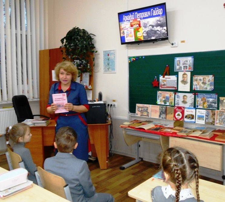 Час литературно-патриотических знаний «Любимых детских книг творец и верный друг ребят Аркадий Гайдар», организованный заведующей библиотекой-филиалом №4 им. М. М. Коцюбинского централизованной библиотечной системы для взрослых городского округа Симферополь Надеждой Беспалько совместно с преподавателем Галиной Ковалевой для учащихся столичной гимназии №9 организован в рамках участия во ІІ Международной акции «Читаем Гайдара сегодня» и продолжил программу мероприятий историко-патриотического проекта «Мы – Наследники Победы! Нам этот мир завещано беречь».