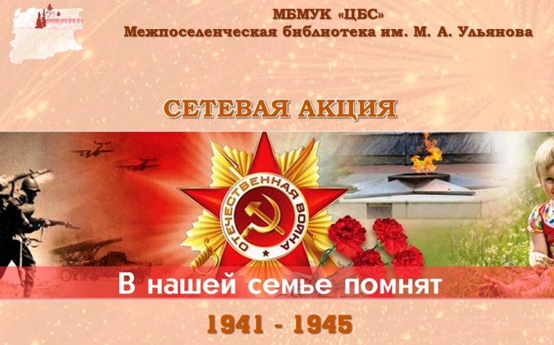 Сотрудники библиотеки-филиала №17 имени Г.К. Жукова приняла участие в сетевой акции "В нашей семье помнят", обьявленной Межпоселенческой библиотекой им. М. А. Ульянова МБМУК "Централизованная Библиотечная Система" (https://vk.com/mipomnim1945?w=wall-191925735_112/all)