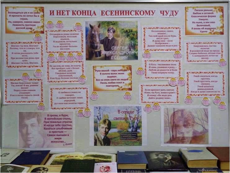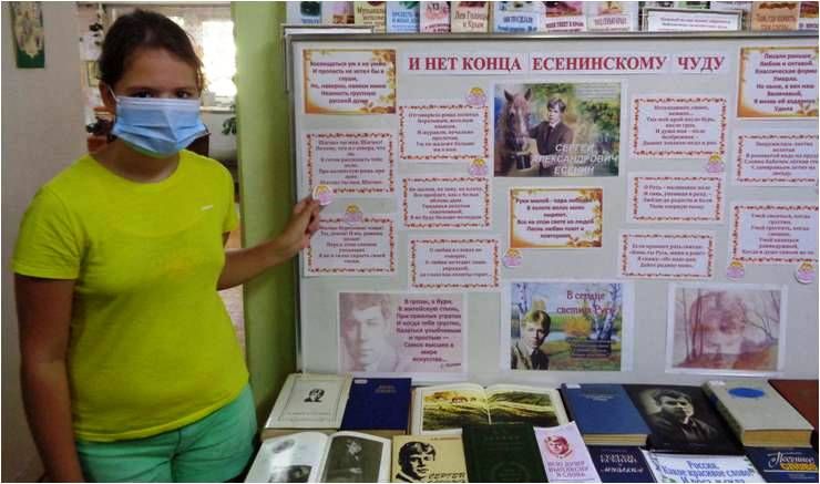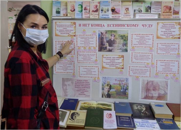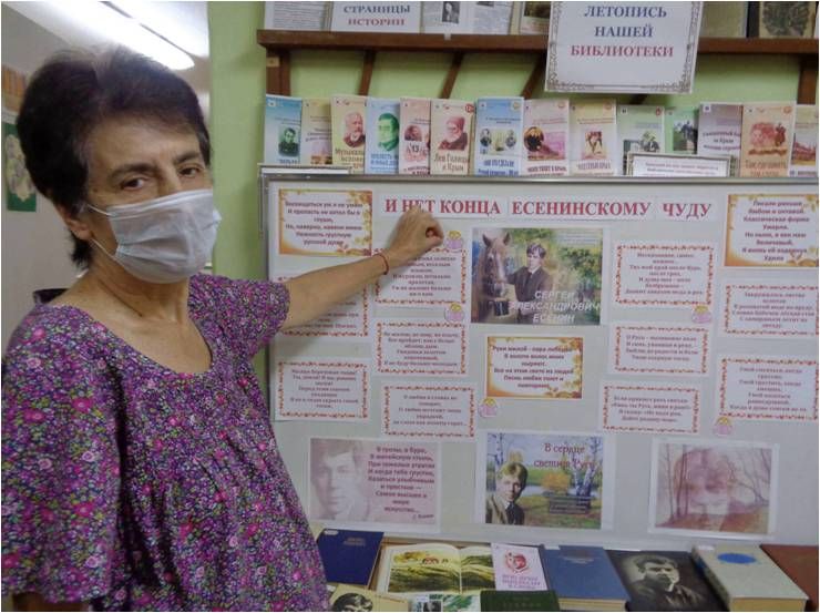 К юбилею всенародно любимого поэта библиотека-филиал №4 им. М.М. Коцюбинского МБУК ЦБС для взрослых Симферополя организовала для своих читателей поэтическую горницу «И нет конца есенинскому чуду».
