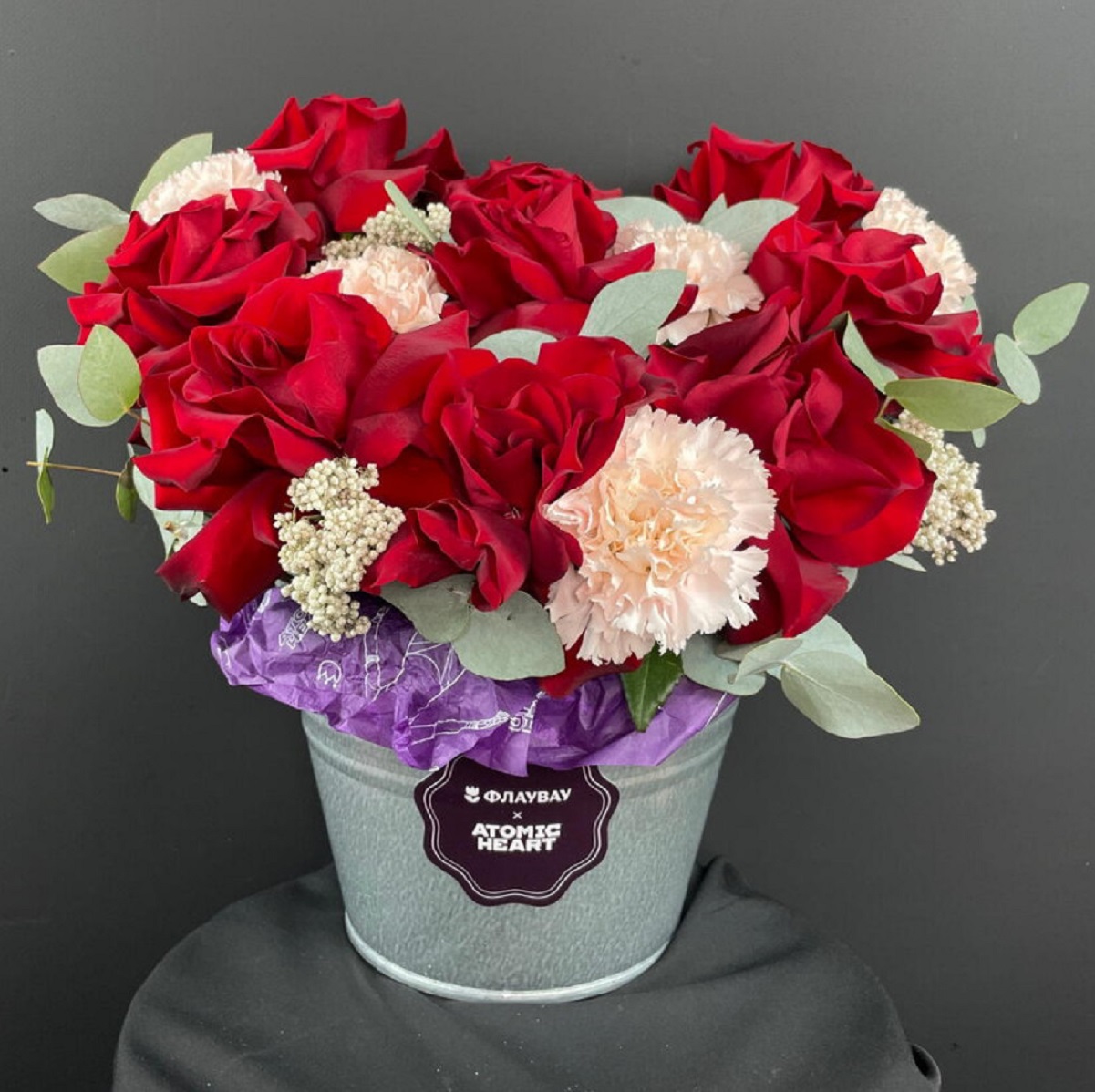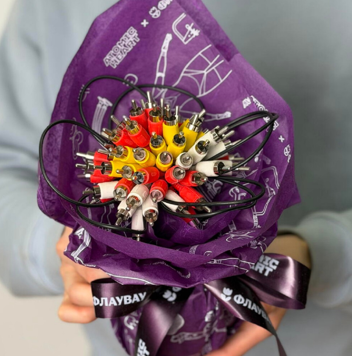 И «цветы» действительно оказались близки к роботизированной тематике. Букеты из коллекции Atomic Heart состоят из кабелей-«тюльпанов» или включают в себя металлические розы. Помимо букетов с изображением игровых элементов, цветы получится подарить в оцинкованном ведёрке.
