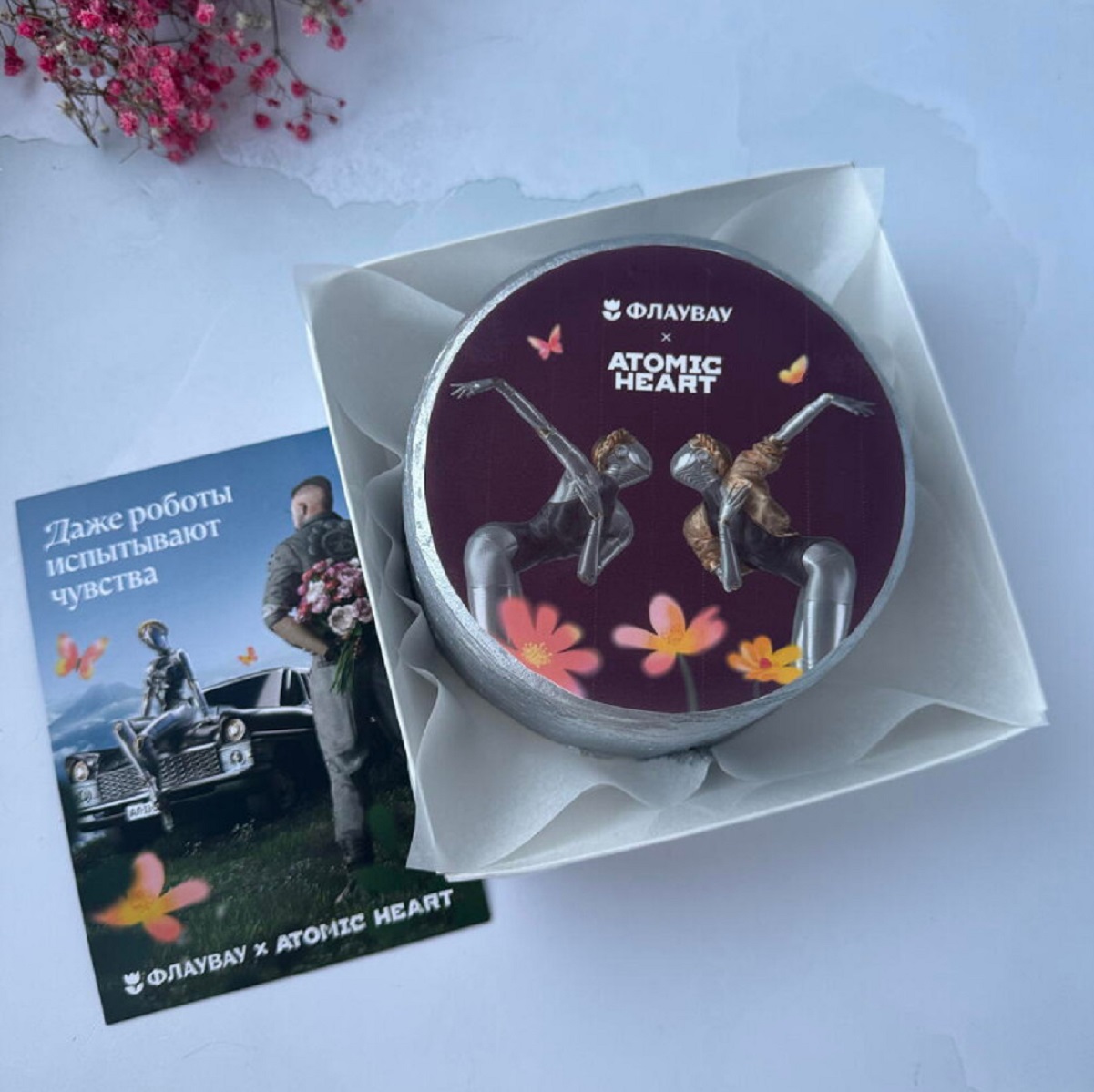 Отечественный шутер Atomic Heart получил тематическую коллекцию презентов в честь грядущих гендерных праздников. Их подготовил маркетплейс цветов и подарков «Флаувау», а слоган столь необычной коллаборации гласит: «Даже роботы испытывают чувства».