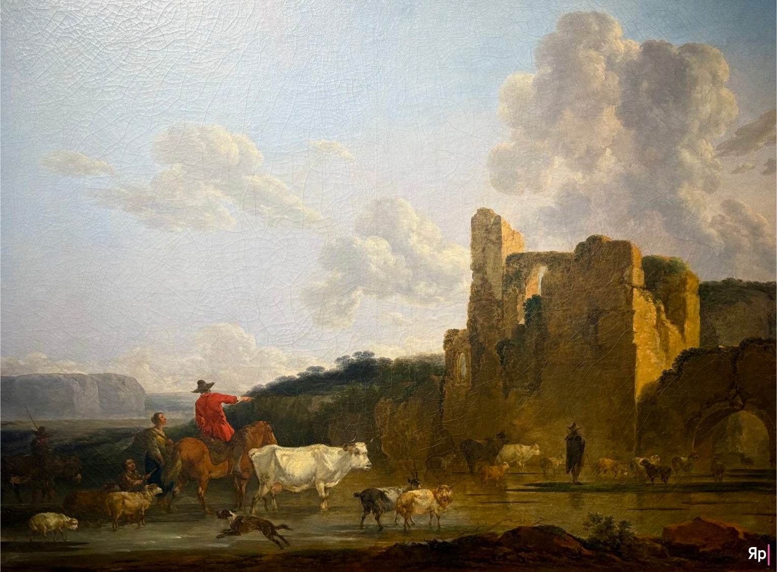 Затем — тишина иного рода. «Пейзаж с руинами» Франческо Казановы зовёт вглядеться в древние руины. Пастухи гонят стадо мимо развалин, и в них — прошлое, которое манит, как и всё неразгаданное. Хочется приблизиться, коснуться рукой камня, услышать его историю.
