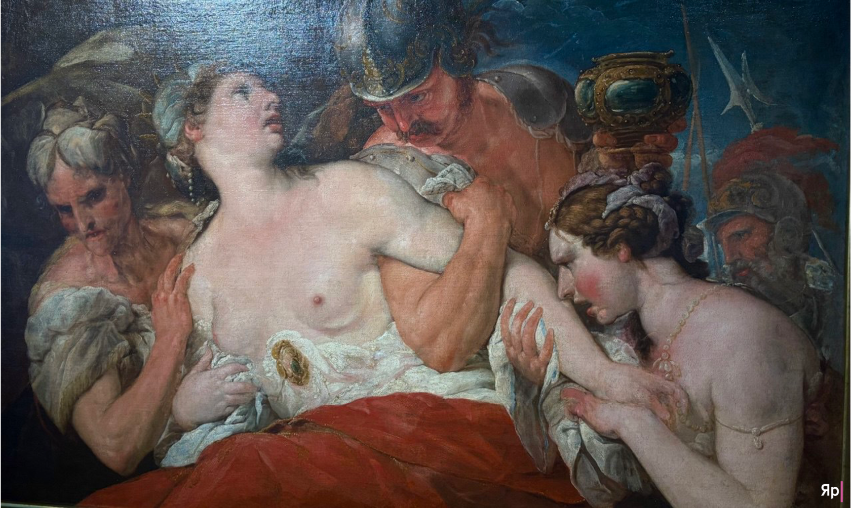 А рядом — финал. «Смерть Софонисбы». Женское тело уже обмякло, потеряло форму, и воины держат его, но в этом жесте нет больше насилия — только растерянность: они опоздали. Софонисба осушила кубок с ядом, который прислал ей бывший жених как единственно возможный свадебный дар. Она выбрала умереть свободной, но не жить в клетке. И когда осознаёшь это до конца, подступают слёзы.