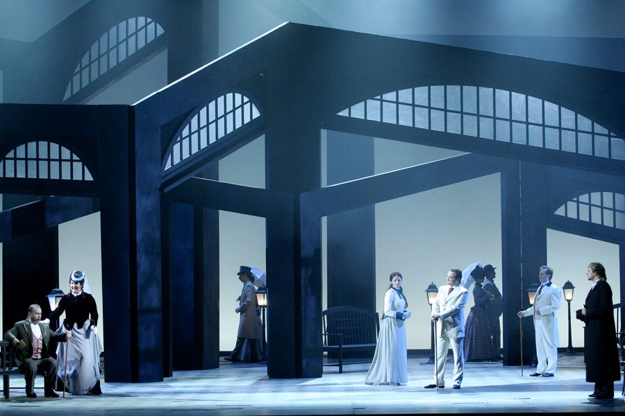 «Симон Бокканегра» из «Ла Скала» образца 2010 года (не 2014-го, как указано в буклете и на сей раз, что тянется еще со времени московских гастролей 2016 года) был показан в Большом в начале сезона 2016/17 уже после того, как в Петербурге на сцене Мариинского театра первая в его истории постановка этой оперы была осуществлена во второй половине сезона 2015/16. Обе они – совместные постановки: миланская – совместно с Берлинской государственной оперой, мариинская – совместно с театрами «Ла Фениче» (Венеция) и «Карло Феличе» (Генуя). Обе выдержаны в эстетике реалистичной абстракции, и обе – типичные «костюмированные концерты», исповедующие в подходе к оперному театру эпохи романтизма, в общем и целом, классические воззрения, в аспекте сюжета и музыки ничего с ног на голову не ставящие.