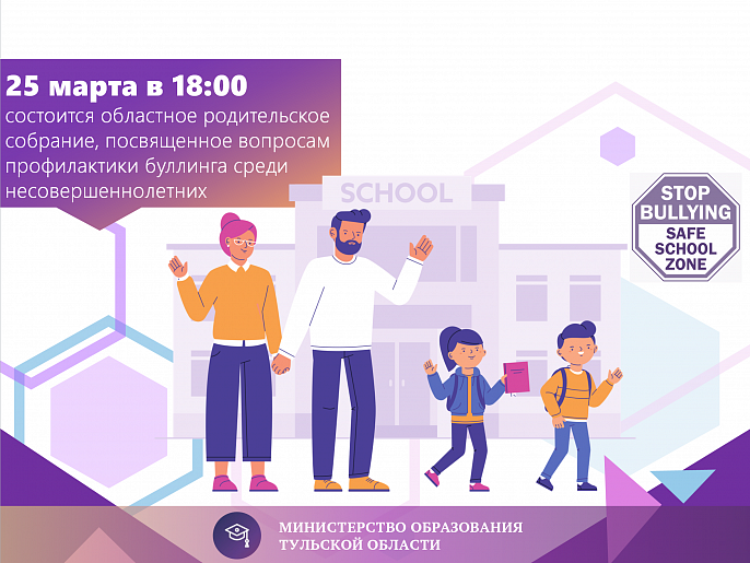 25 марта в Тульской области состоится региональное родительское собрание. Темой обсуждения станут вопросы профилактики буллинга среди несовершеннолетних.