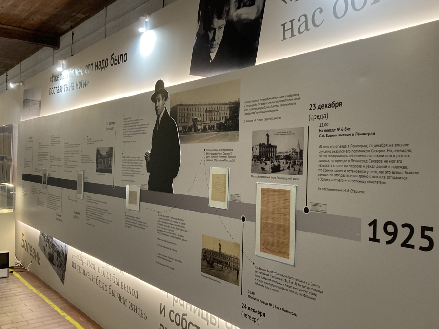 Пока мы беседуем за чашкой чая об итогах года, речь заходит, конечно же, и об еще одной важной приближающейся дате – столетии со дня гибели поэта. Собравшимся журналистам хорошо известно об открытой еще в октябре выставке-расследовании «Мое степное пенье сумело бронзой прозвенеть…» (16+). Уже после встречи с руководством нам предстоит самим с головой окунуться в этот беспрецедентный проект. Пока же мы интересуемся у его создателей, насколько сложно было его осуществить. Выясняется, что к желанию обнародовать еще не известные широкой публике фотографии и документы, полученные во время дознания в 1925 году, с большим пиететом отнеслись сотрудники ФСБ. Также в проект включились коллективы Российского госархива социально-политической истории, Российского государственного архива, Института русской литературы РАН, Государственного центрального музея современной истории и еще десятка государственных и региональных учреждений, так или иначе связанных с именем великого поэта.