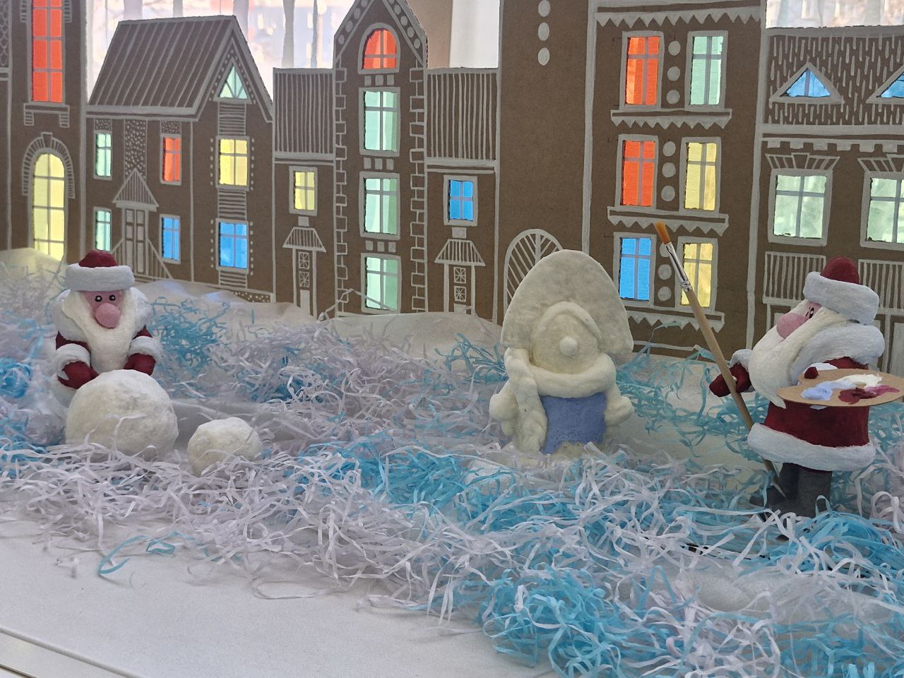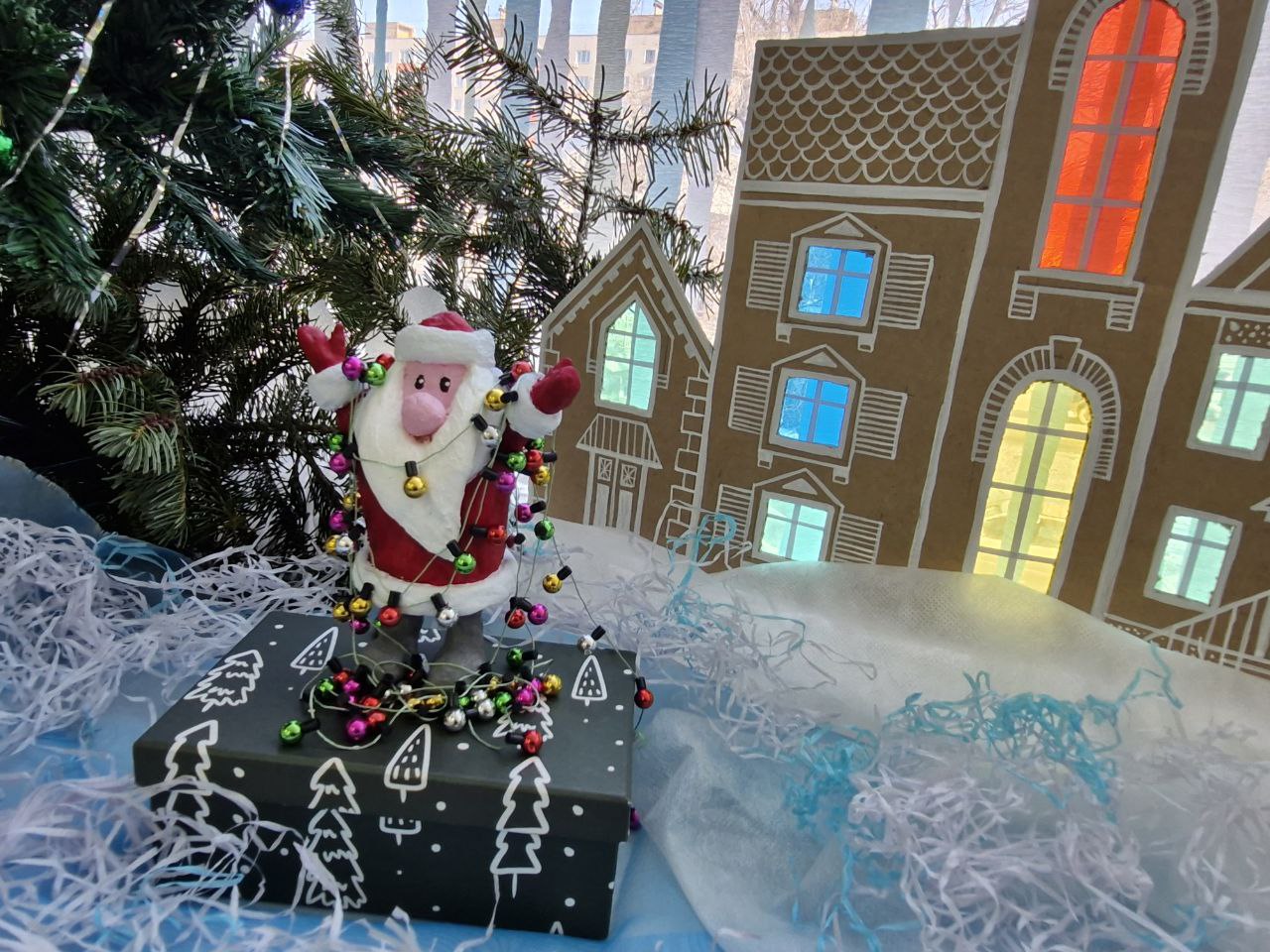 Его-то и сотворили в Краевой библиотеке – здесь на пространстве всего практически шестиметрового оконного пролёта холла второго этажа кудесница Виктория Владимировна разместила зимний городок Дед Морозов.