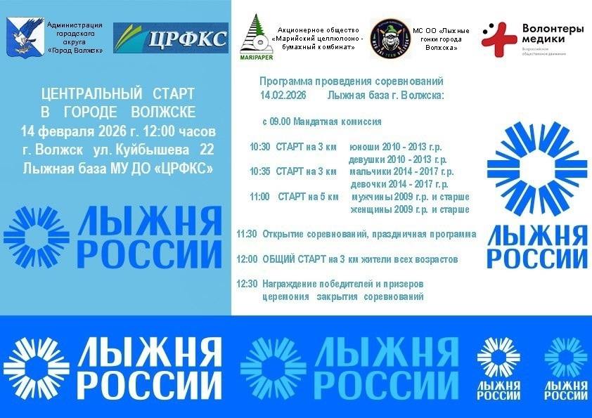 14 февраля в Волжске пройдет старт «Лыжня России – 2026».