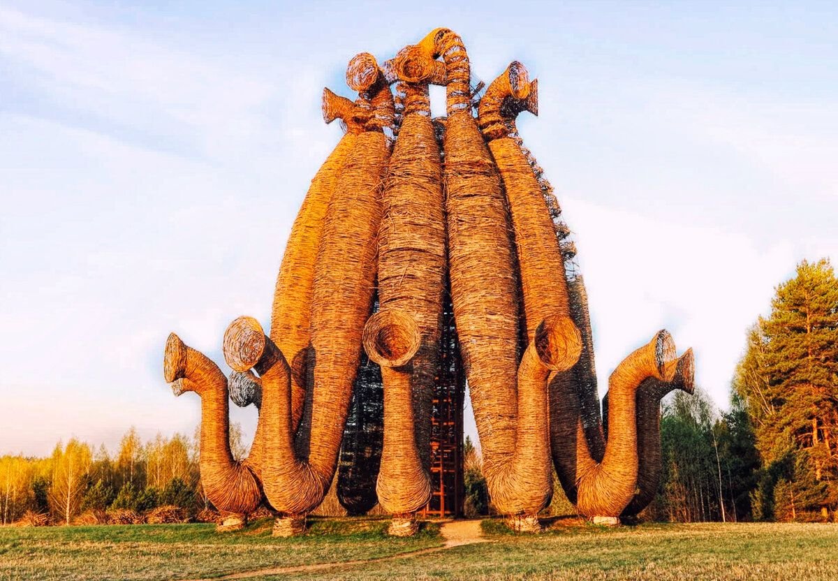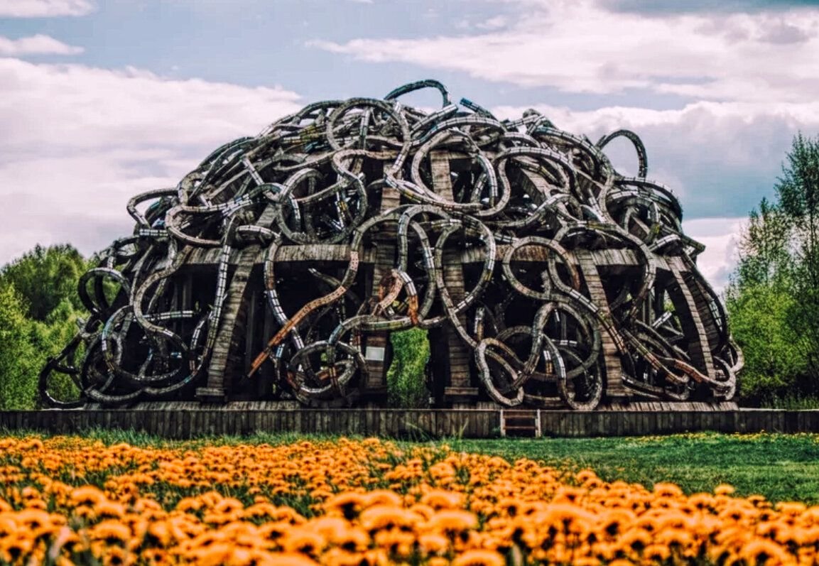 Самый крупный арт-парк в Европе (60 гектаров)поражает своей не похожестью на все, что я видела. Находится на территории заповедника Угра в Калужской области. Здесь есть где жить и где поесть приехавшему турису. Первые арт-объекты в деревне Никола-Ленивец начал делать Николай Полисский еще в начале 90-х, а первый фестиваль прошел тут только в 2006 году. Сейчас здесь представлены работы российских и зарубежных авторов, в том числе и ландшафтные работы, что делает местность фантастической планетой