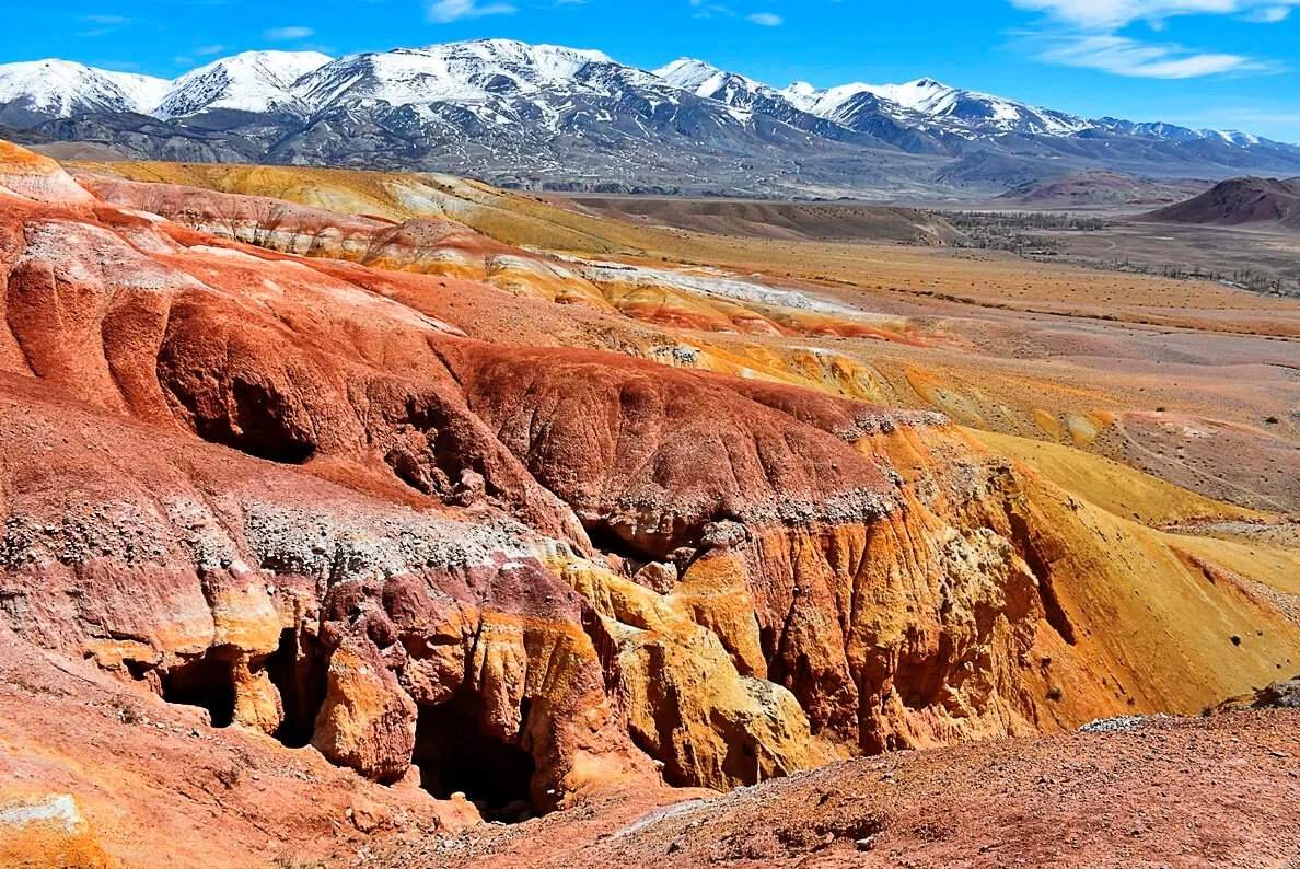 Урочище Кызыл Чин поражает разнообразием глин на своей поверхности, отчего кажется, что это не наша планета, а ее кто-то сверху полил радужными красками. Добраться сюда можно по Чуйскому тракту